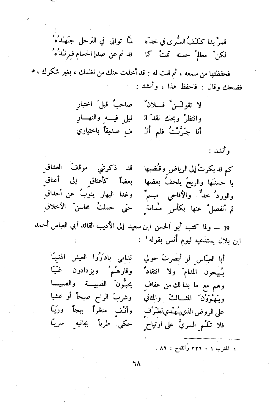 لم أنفصل عنها بكأس مدامة ... حتى حملت محاسن الأخلاق 19 - ولما كتب أبو الحسن ابن سعيد إلى الأديب القائد أبي العباس أحمد ابن بلال يستدعيه ليوم أنس بقوله (1) :