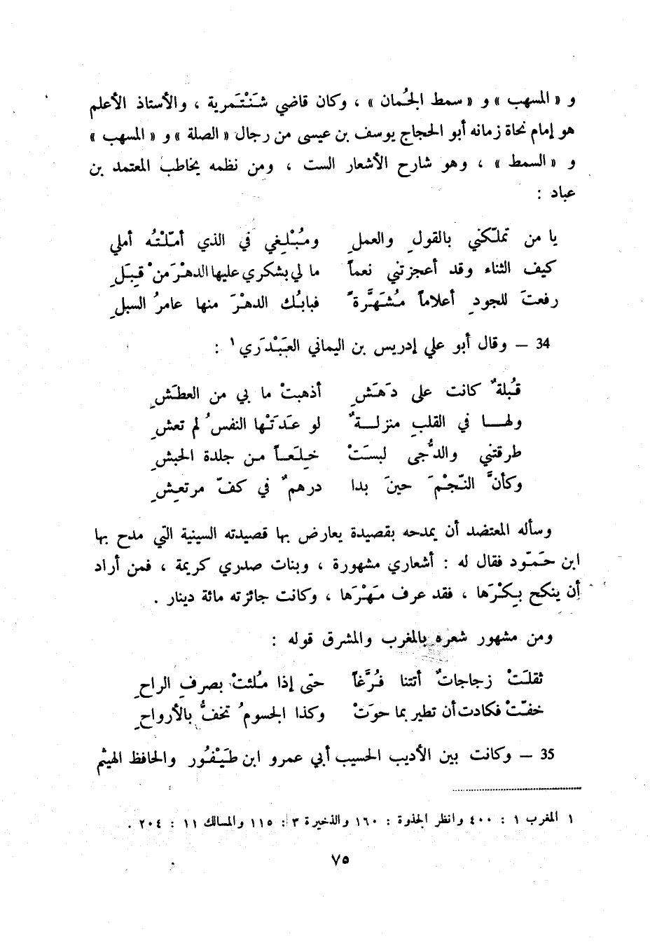 رفعت للجود أعلاماً مشهرةً ... فبابك الدهر منها عامر السبل 34 - وقال أبو علي إدريس بن اليماني العبدري (1) :