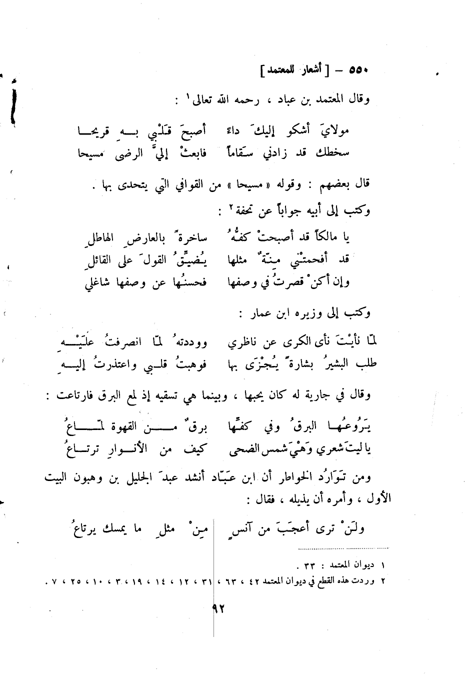 (2) وردت هذه القطع في ديوان المعتمد 42، 63، 31، 12، 14، 19، 3، 10، 25، 7.