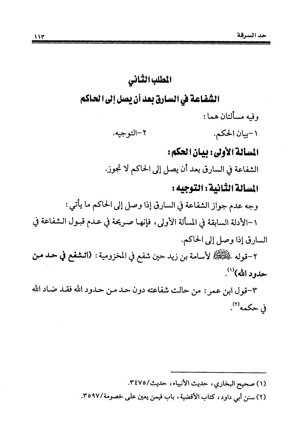 المطلب الثاني الشفاعة في السارق بعد أن يصل إلى الحاكم