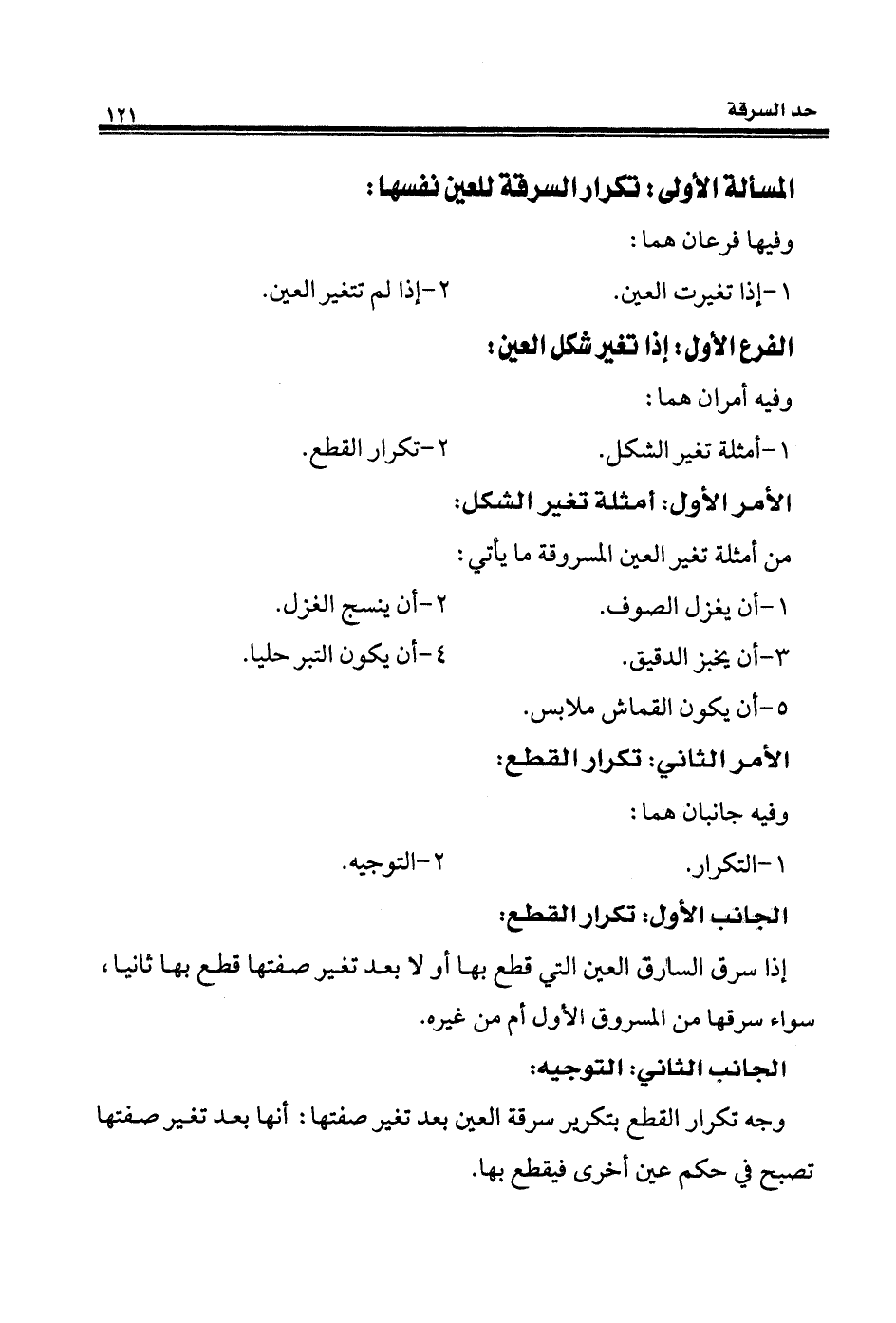 وجه تكرار القطع بتكرير سرقة العين بعد تغير صفتها: أنها بعد تغير صفتها تصبح في حكم عين أخرى فيقطع بها.