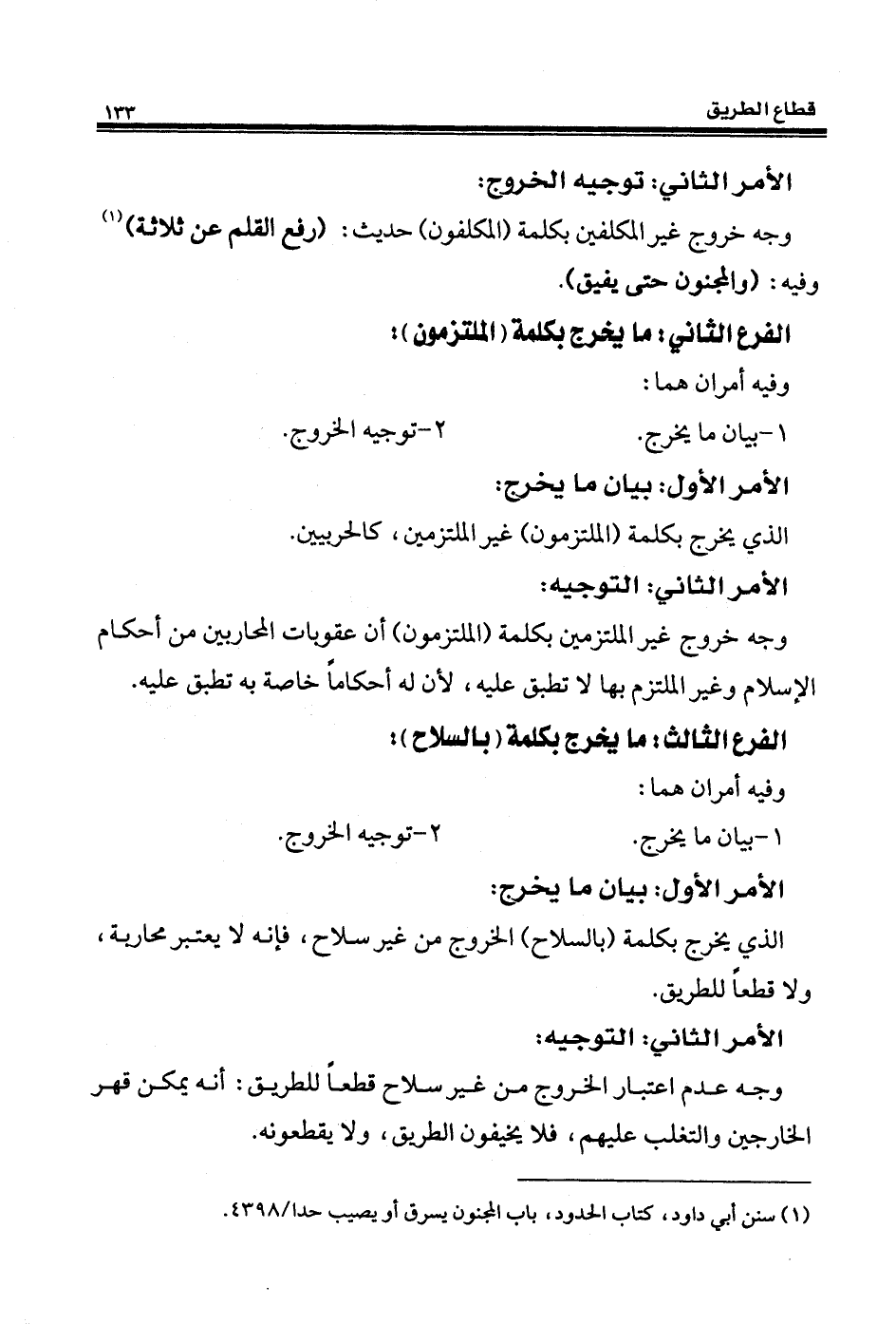 الذي يخرج بكلمة (بالسلاح) الخروج من غير سلاح، فإنه لا يعتبر محاربة، ولا قطعًا للطريق.