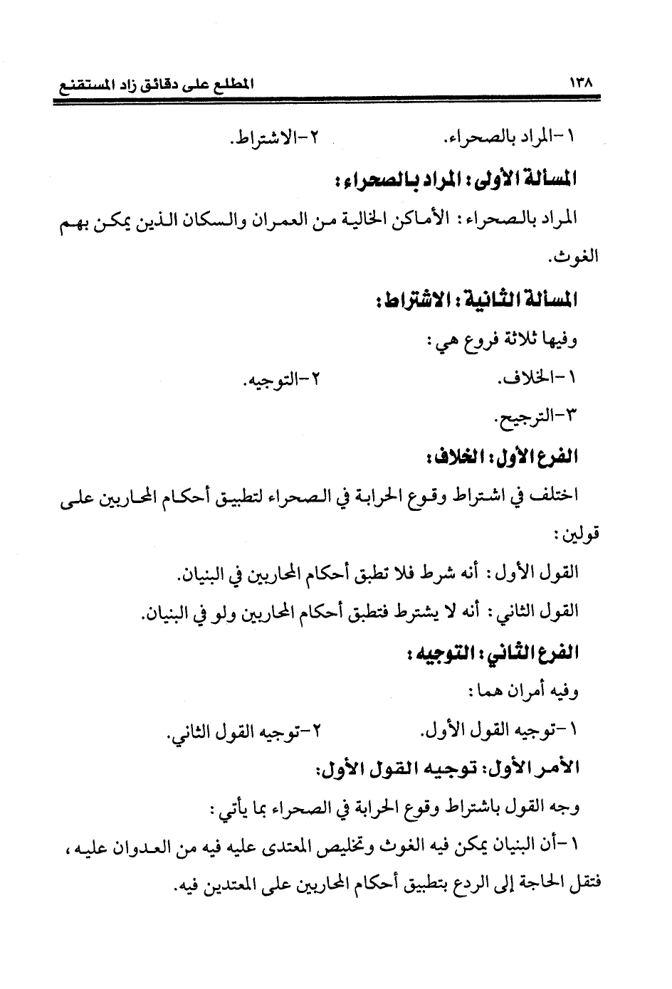 اختلف في اشتراط وقوع الحرابة في الصحراء لتطبيق أحكام المحاربين على قولين: