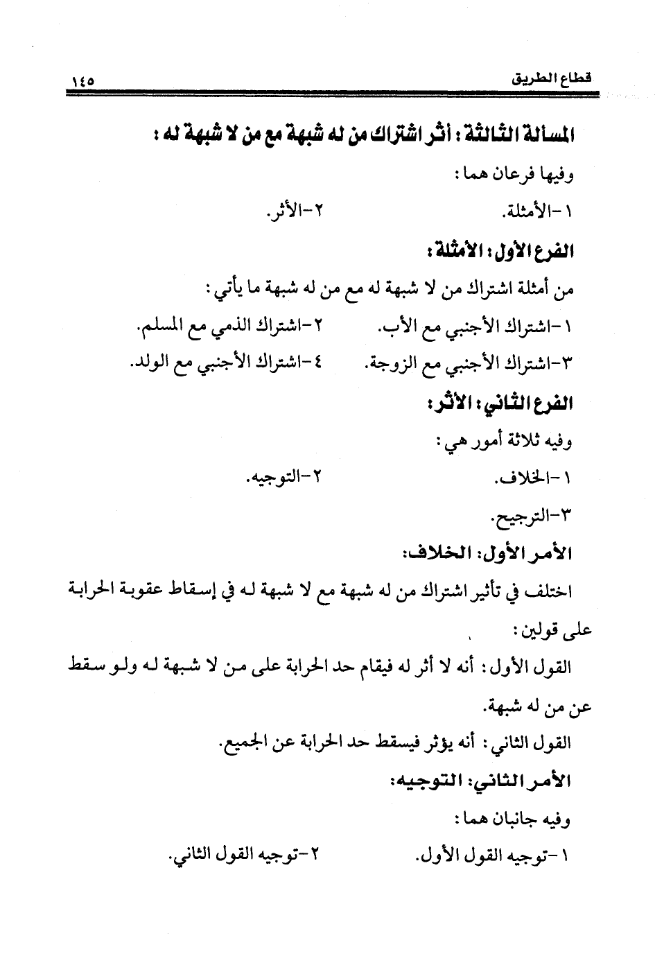اختلف في تأثير اشتراك من له شبهة مع لا شبهة له في إسقاط عقوبة الحرابة على قولين: