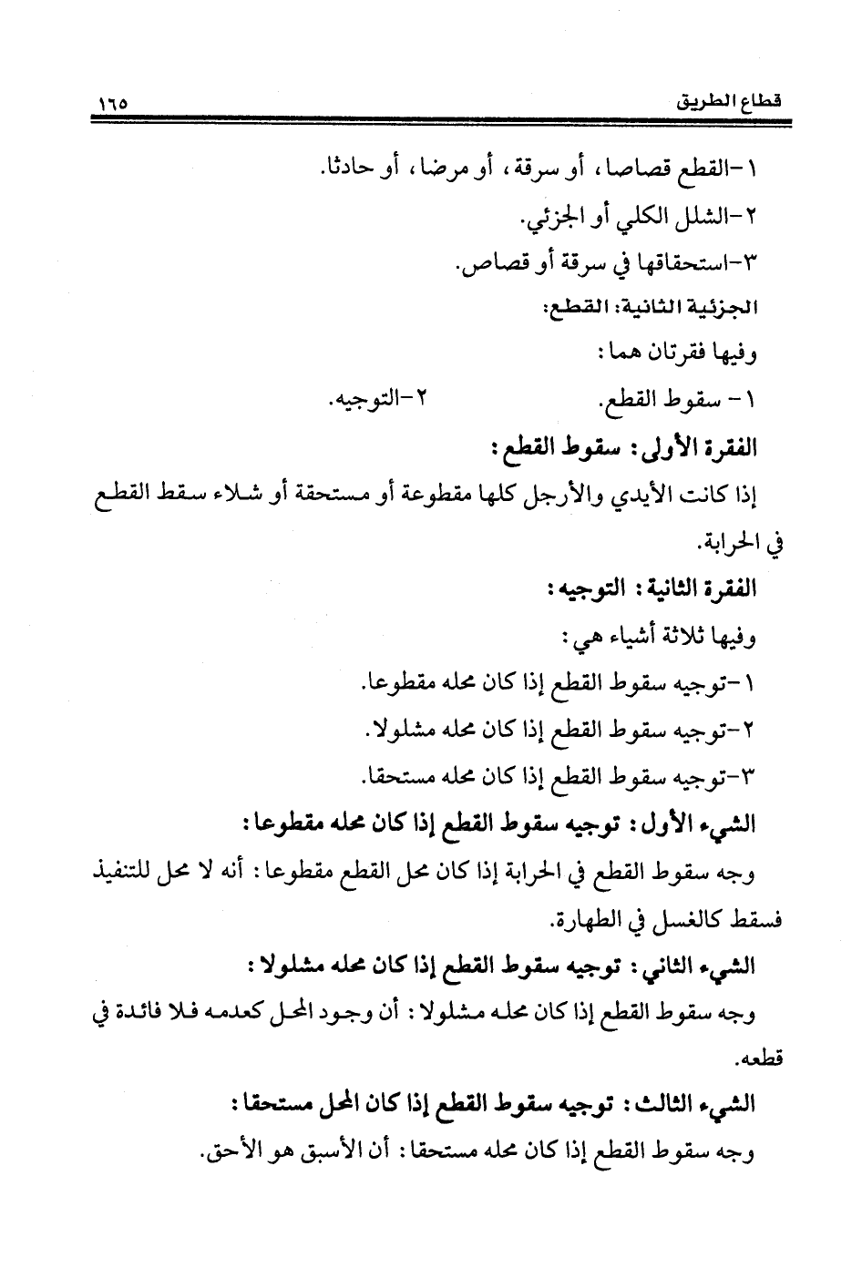 الشيء الثاني: توجيه سقوط القطع إذا كان محله مشلولا: