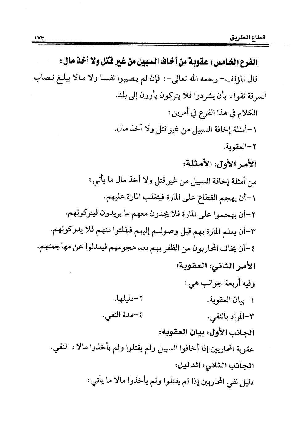 عقوبة المحاربين إذا أخافوا السبيل ولم يقتلوا ولم يأخذوا مالا: النفي.