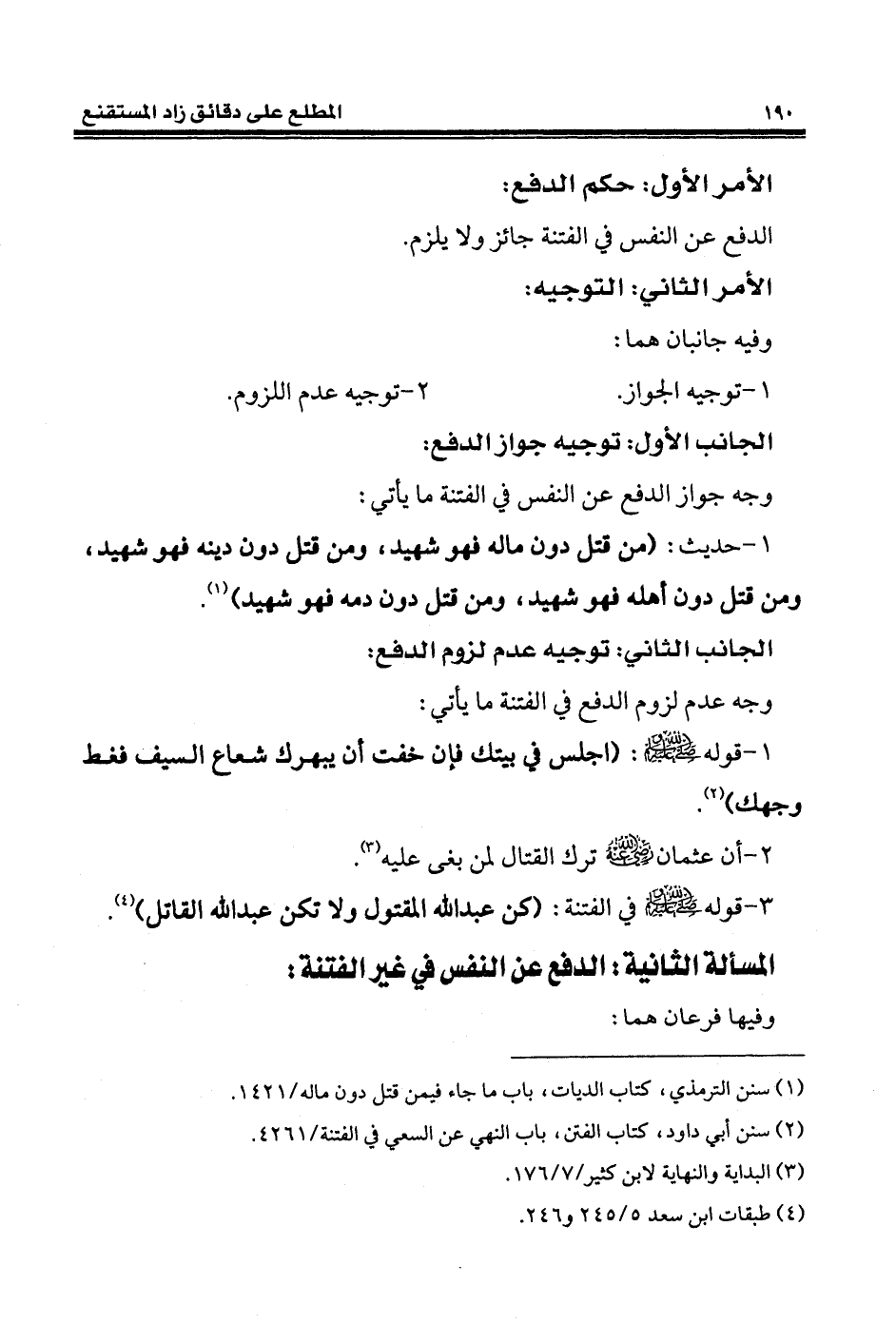 المسألة الثانية: الدفع عن النفس في غير الفتنة: