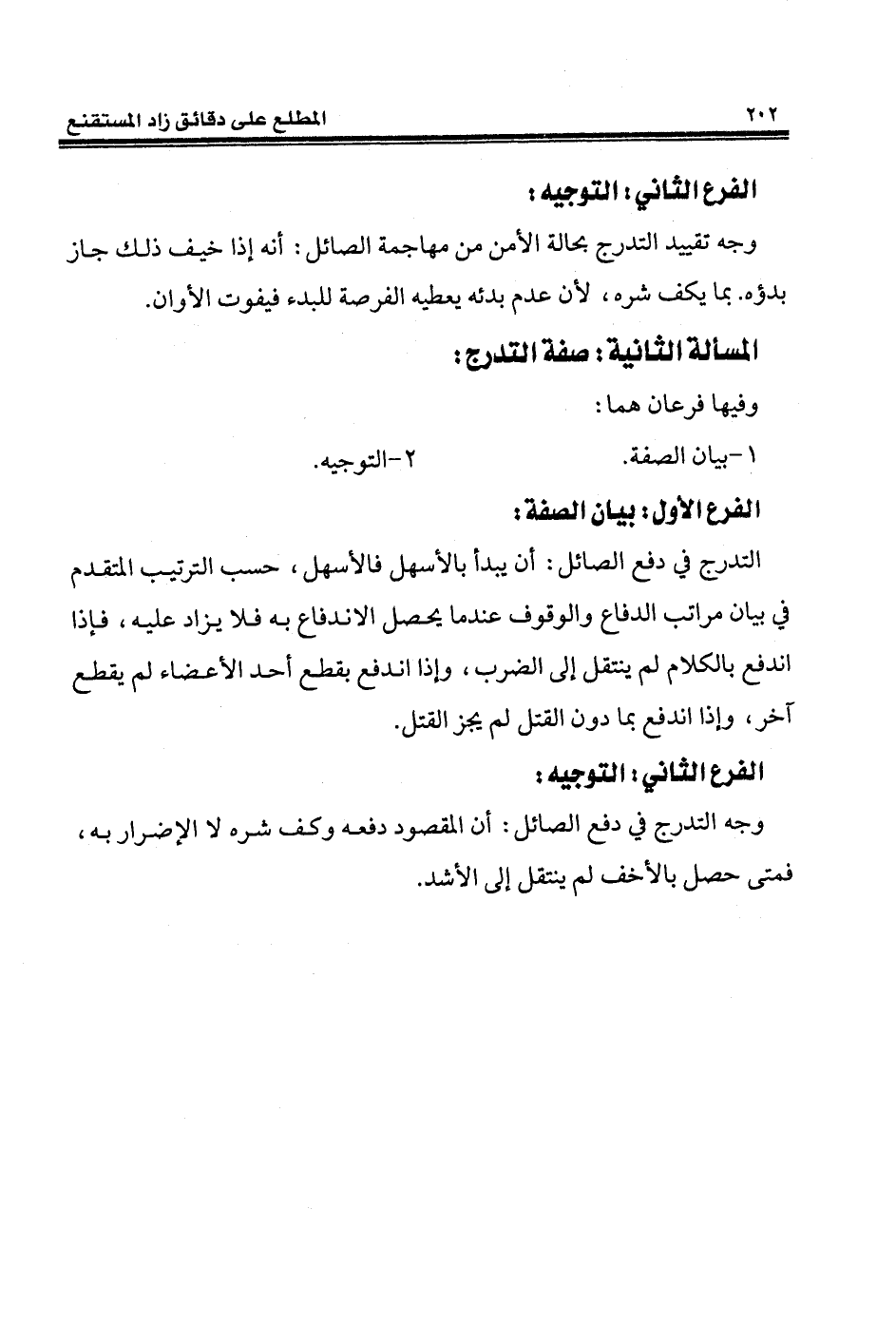 وجه التدرج في دفع الصائل: أن المقصود دفعه وكف شره لا الإضرار به، فمتى حصل بالأخف لم ينتقل إلى الأشد.