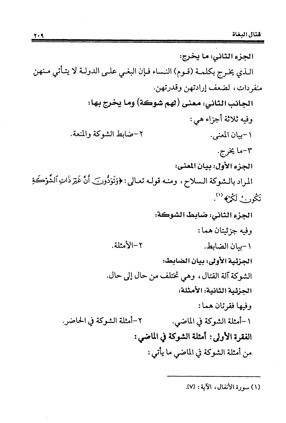 المراد بالشوكة السلاح، ومنه قوله تعالى: {وَتَوَدُّونَ أَنَّ غَيْرَ ذَاتِ الشَّوْكَةِ تَكُونُ لَكُمْ} (¬1).