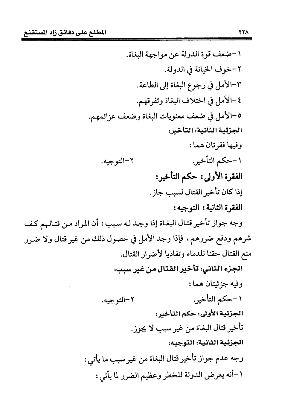 وجه عدم جواز تأخير قتال البغاة من غير سبب ما يأتي: