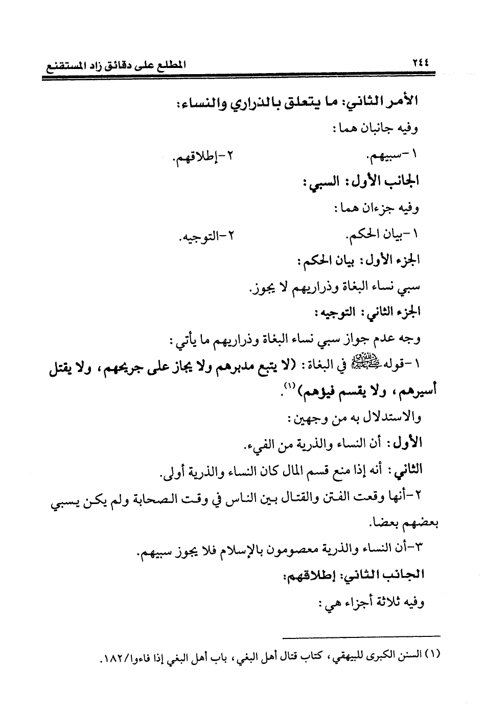 (¬1) السنن الكبرى للبيهقي، كتاب قتال أهل البغي، باب أهل البغي إذا فاءوا / 182.