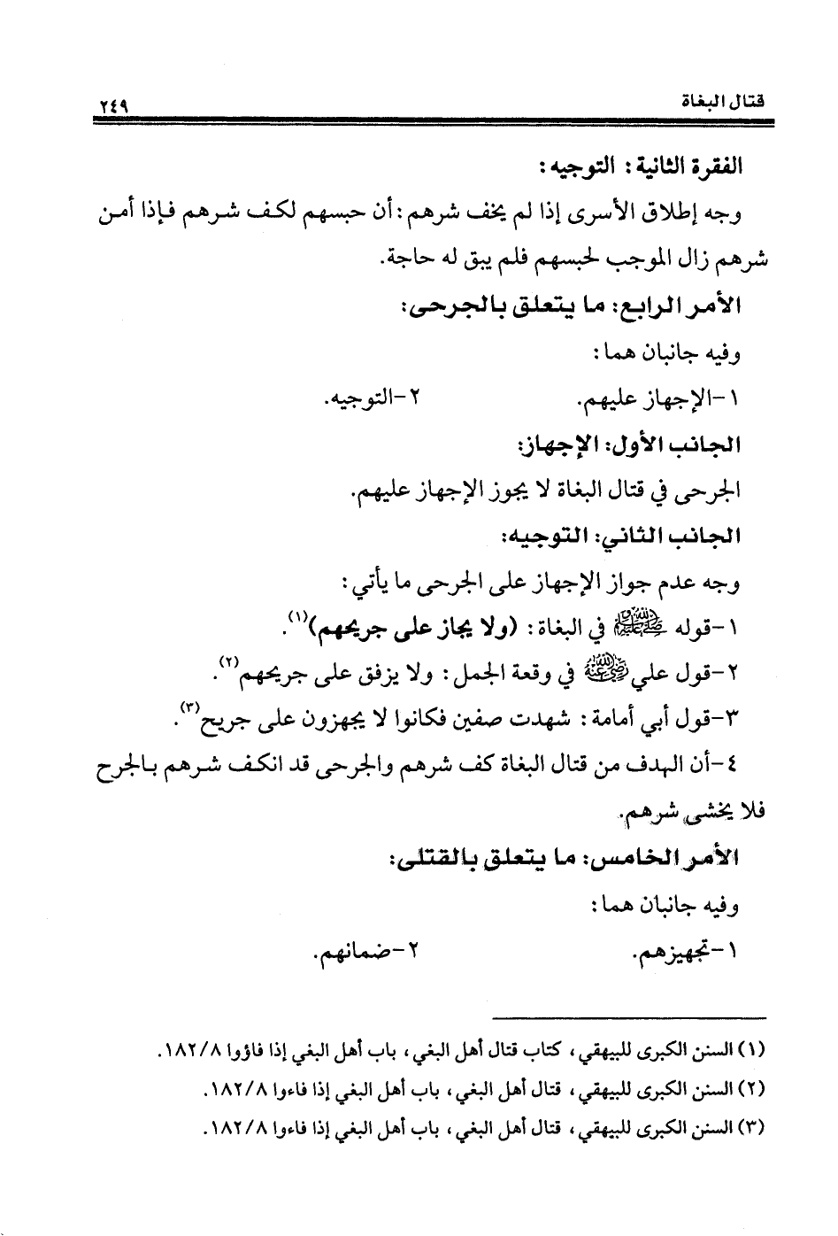 (¬3) السنن الكبرى للبيهقي، قتال أهل البغي، باب أهل البغي إذا فاءوا 8/ 182.