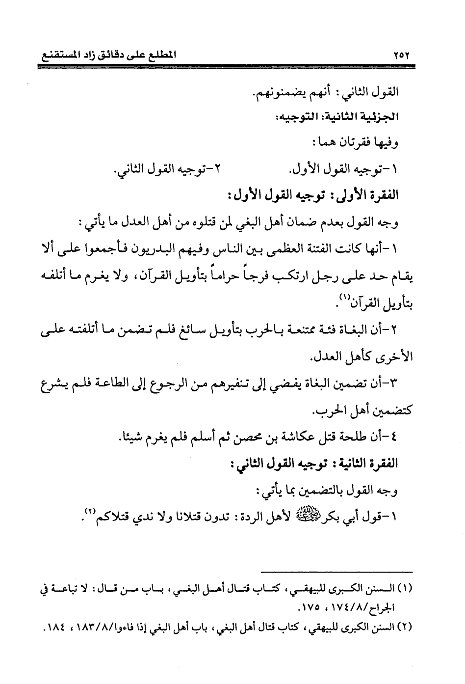 (¬2) السنن الكبرى للبيهقي، كتاب قتال أهل البغي، باب أهل البغي إذا فاءوا / 8/ 183، 184.