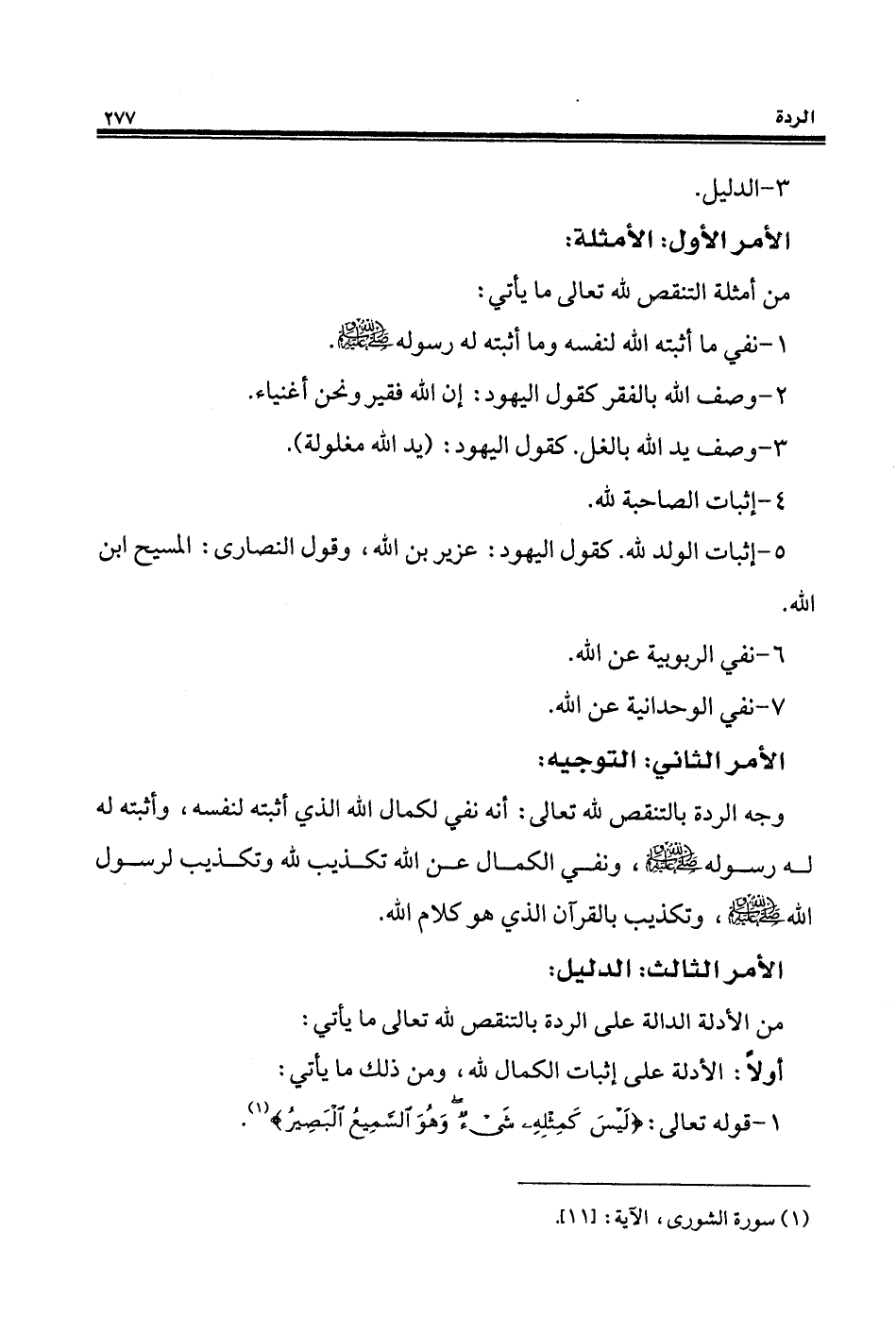 من الأدلة الدالة على الردة بالتنقص لله تعالى ما يأتي: