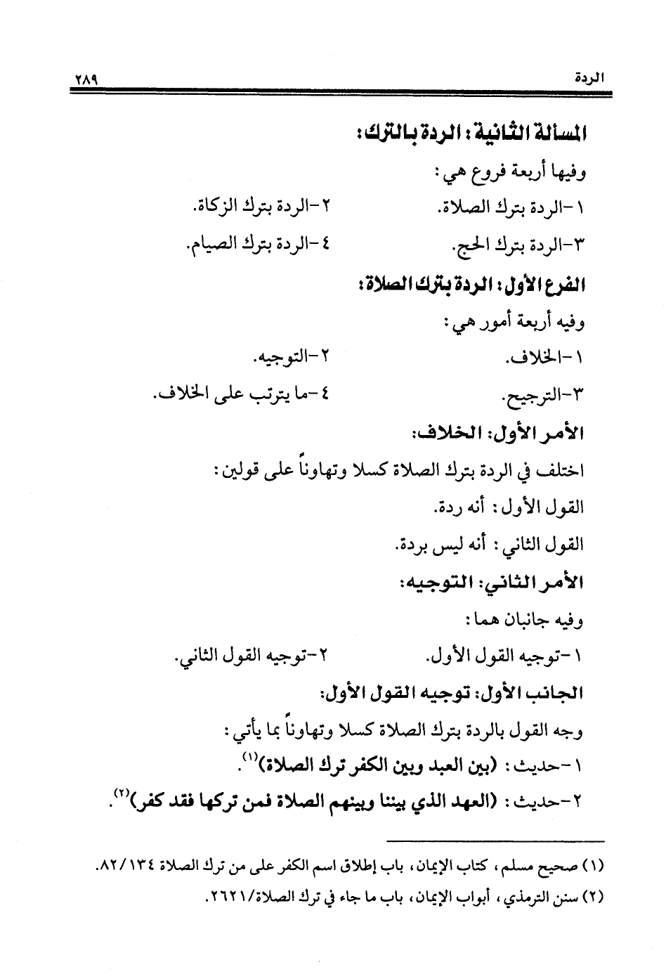 (¬2) سنن الترمذي، أبواب الإيمان، باب ما جاء في ترك الصلاة/2621.