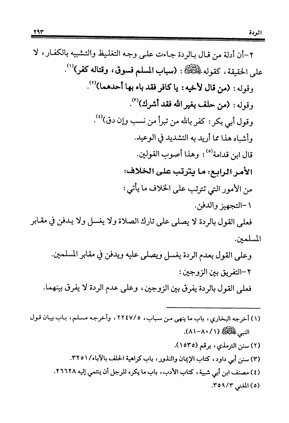 2 - أن أدلة من قال بالردة جاءت على وجه التغليظ والتشبيه بالكفار، لا على الحقيقة، كقوله - صلى الله عليه وسلم -: (سباب المسلم فسوق، وقتاله كفر) (¬1).