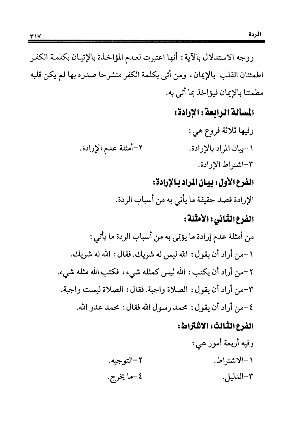 من أمثلة عدم إرادة ما يؤتى به من أسباب الردة ما يأتي: