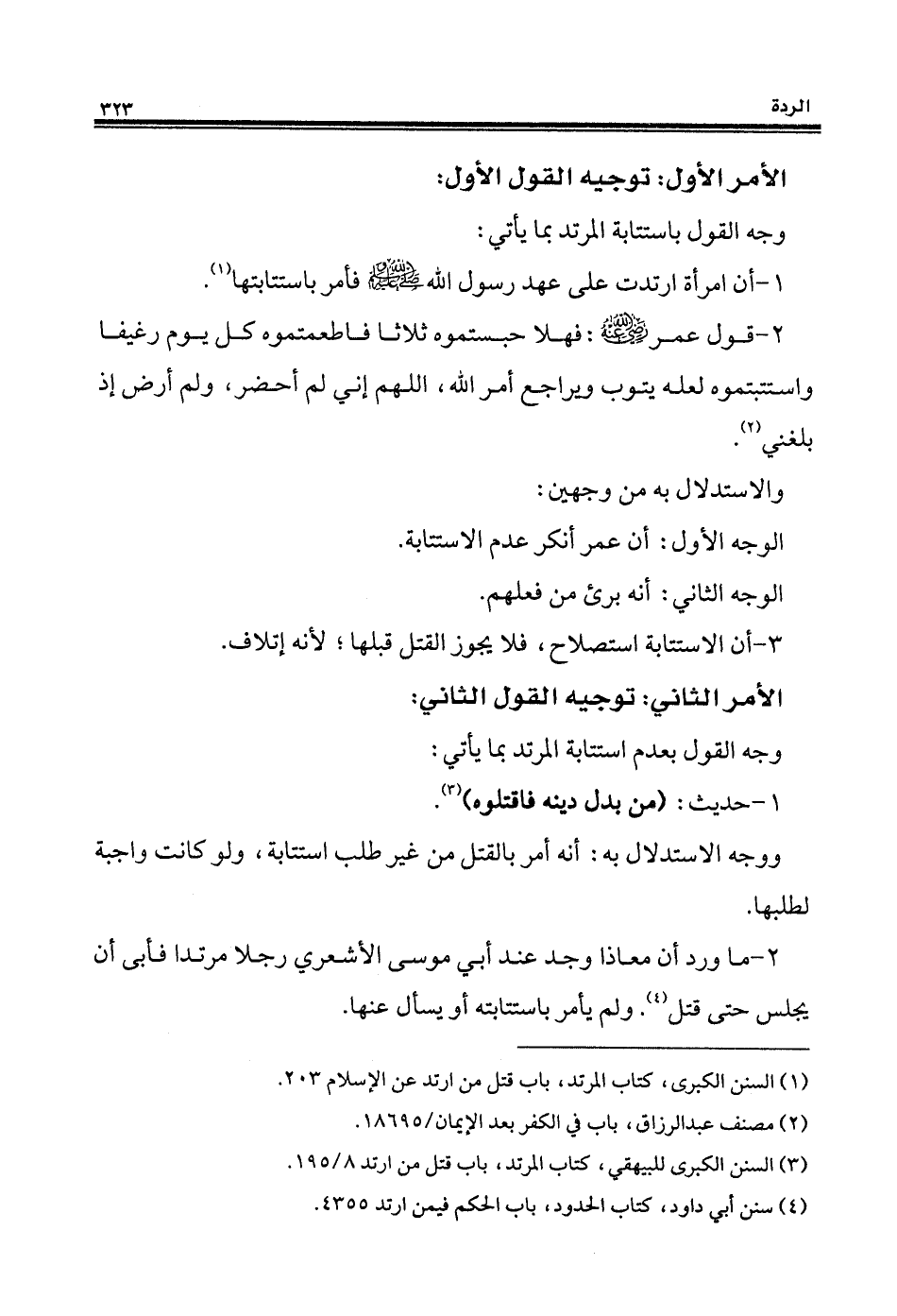 (¬1) السنن الكبرى، كتاب المرتد، باب قتل من ارتد عن الإسلام 203.