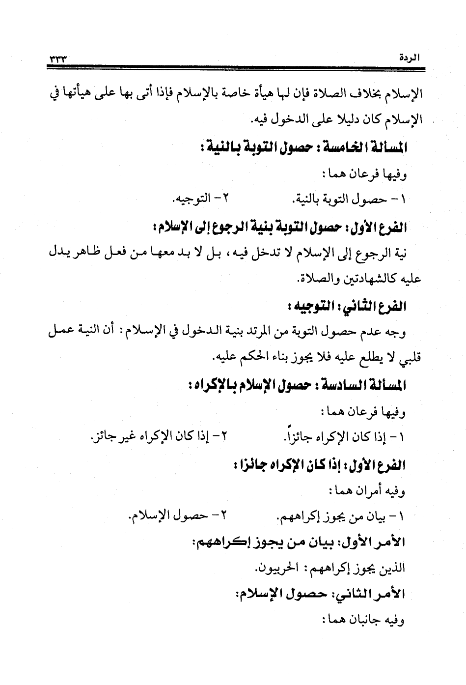 الفرع الأول: حصول التوبة بالنية الرجوع إلى الإسلام: