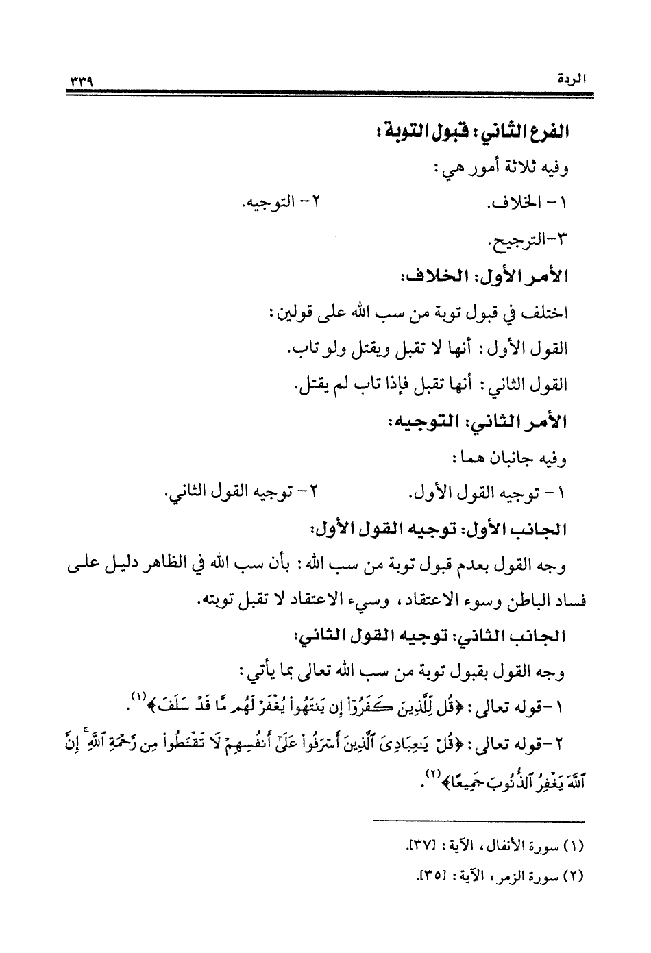 (¬1) سورة الأنفال، الآية: [37].
