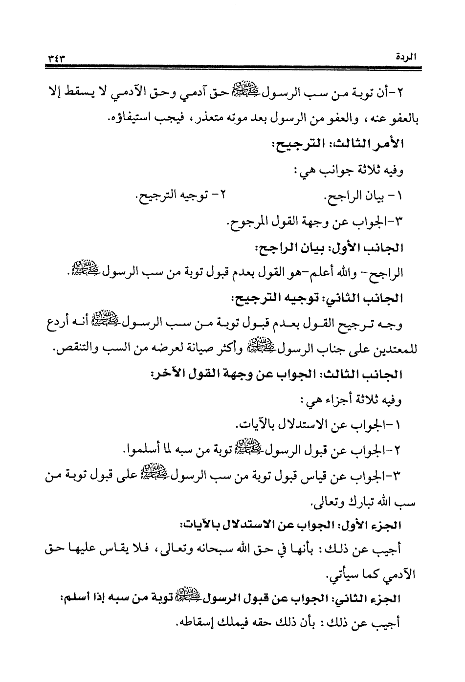 3 - الجواب عن قياس قبول توبة من سب الرسول - صلى الله عليه وسلم - على قبول توبة من سب الله تبارك وتعالى.