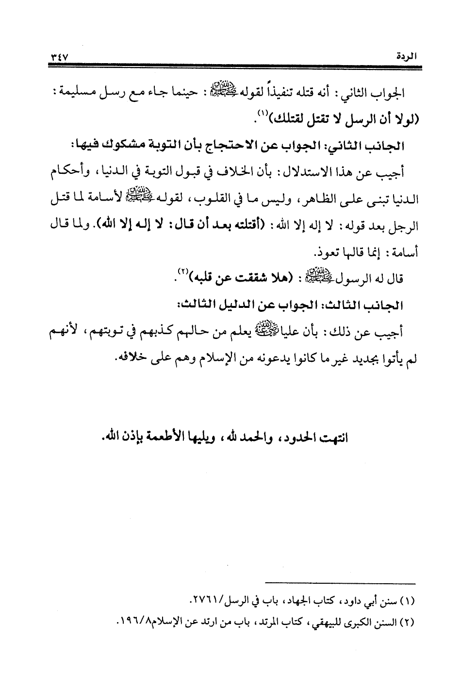 (¬2) السنن الكبرى للبيهقي، كتاب المرتد، باب من ارتد عن الإسلام 8/ 196.