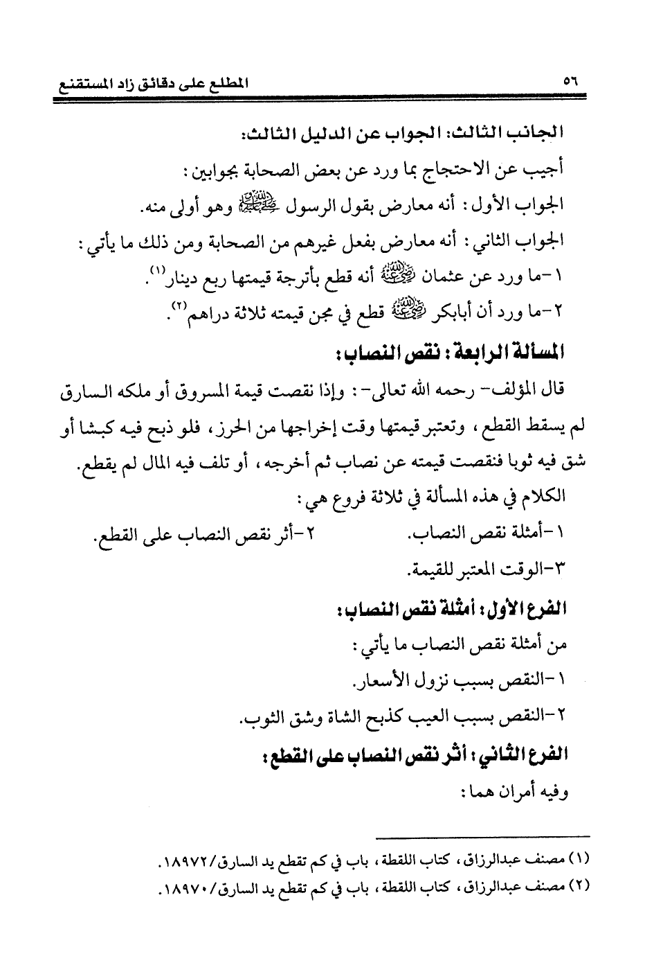2 - أثر نقص النصاب على القطع.