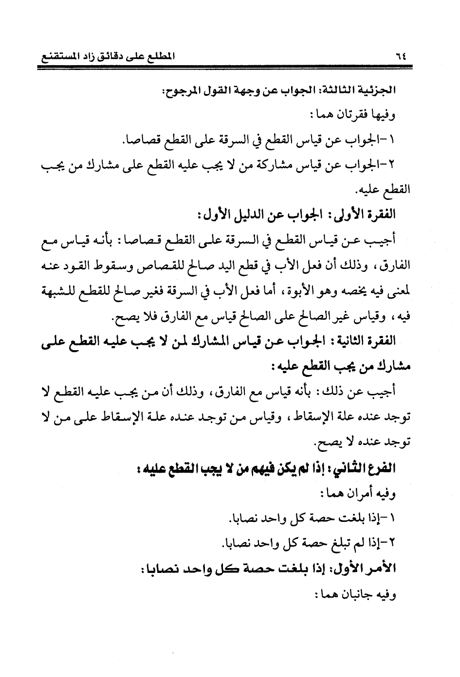 الفقرة الثانية: الجواب عن قياس المشارك لمن لا يجب عليه القطع على مشارك من يجب القطع عليه: