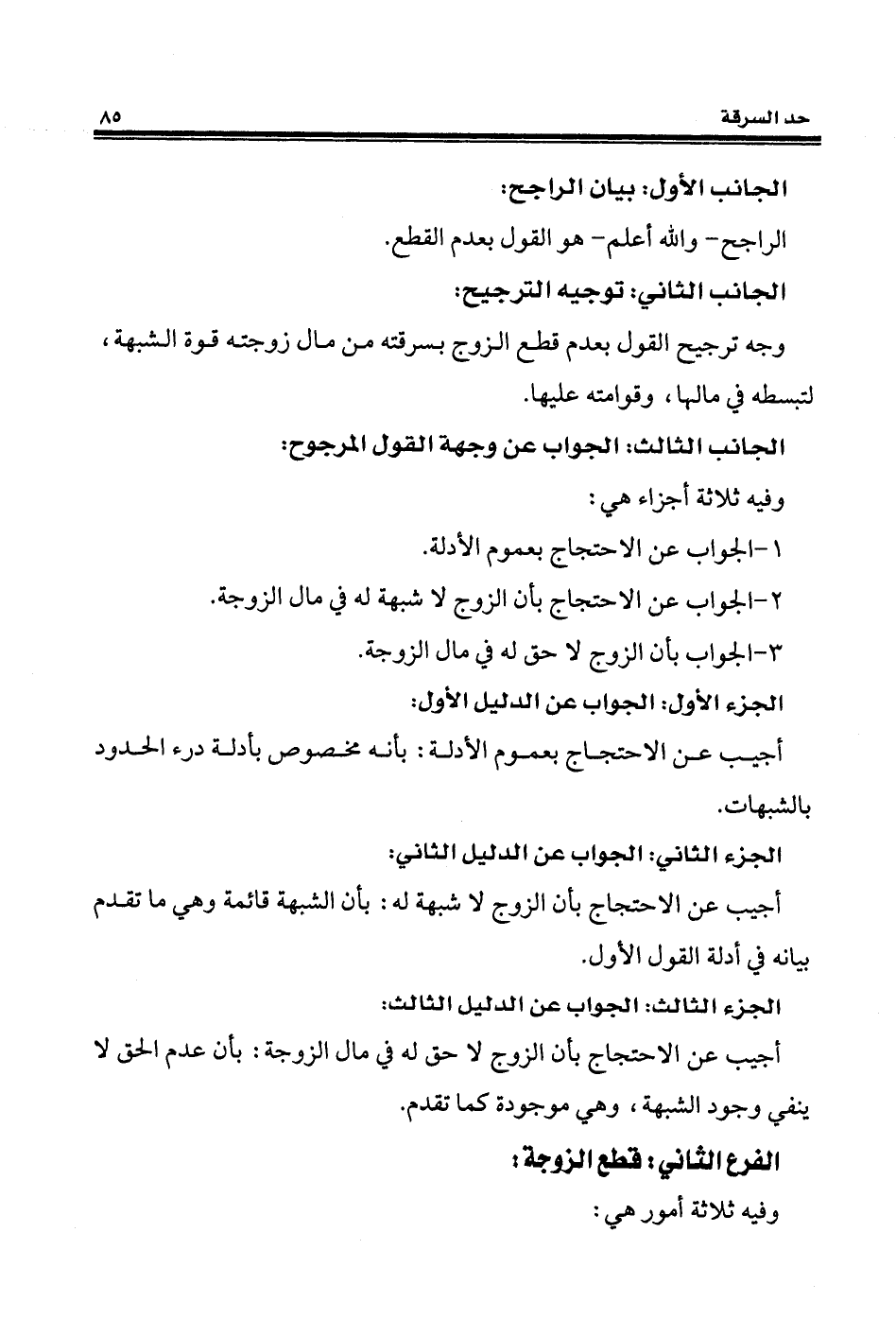 وجه ترجيح القول بعدم قطع الزوج بسرقته من مال زوجته قوة الشبهة، لتبسطه في مالها، وقوامته عليها.