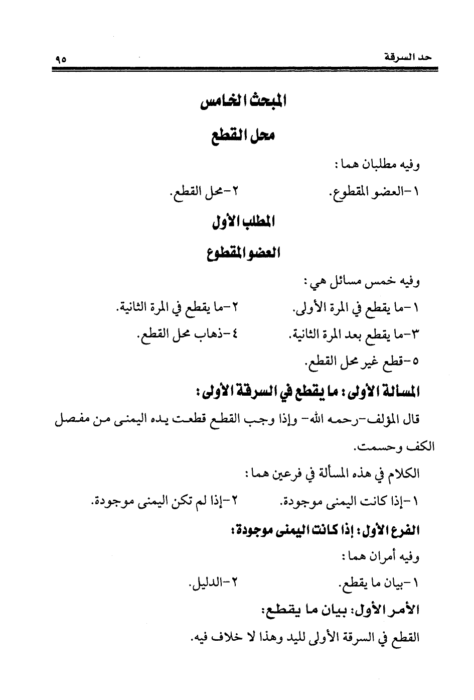 المسألة الأولى: ما يقطع في السرقة الأولى: