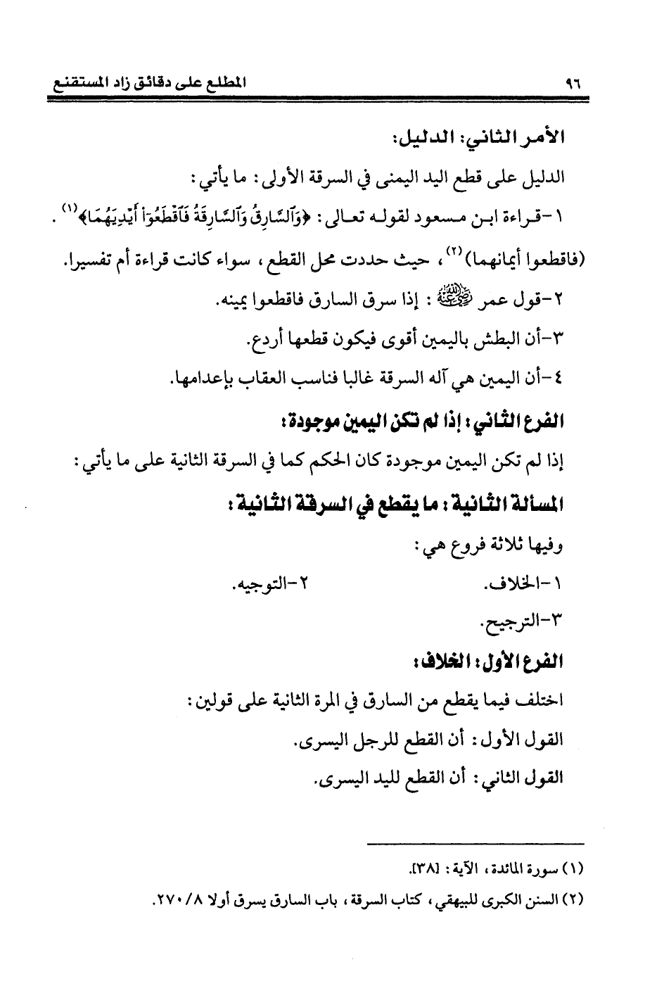 (¬2) السنن الكبرى للبيهقي، كتاب السرقة، باب السارق يسرق أولا 8/ 270.