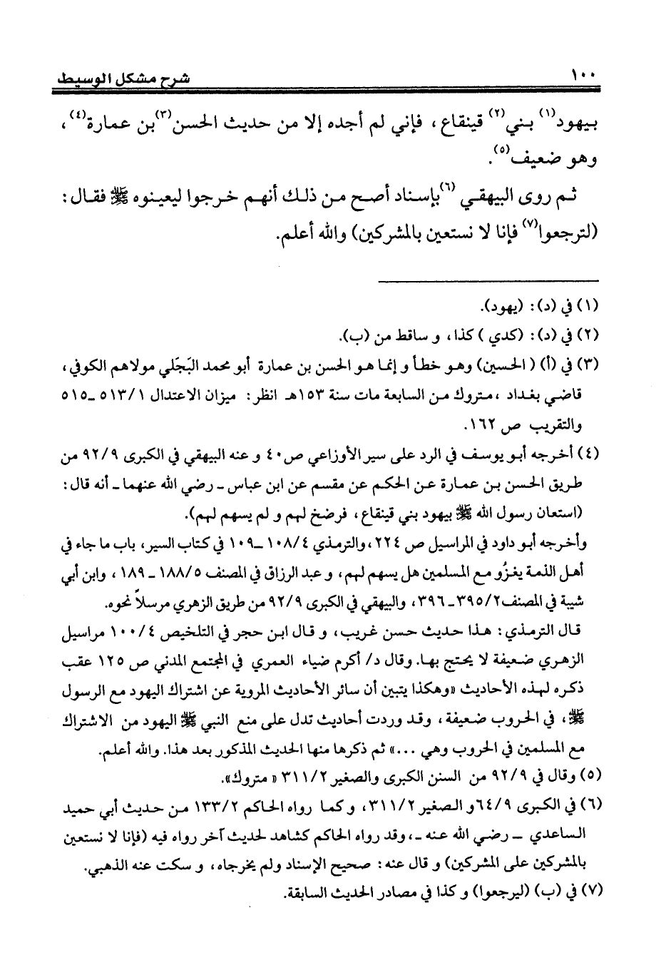 قال الترمذي: هذا حديث حسن غريب، وقال ابن حجر في التلخيص 4/ 100 مراسيل الزهري ضعيفة لا يحتج بها. وقال د/ أكرم ضياء العمري في المجتمع المدني ص 125 عقب ذكره لهذه الأحاديث "وهكذا يتبين أن سائر الأحاديث المروية عن اشتراك اليهود مع الرسول - صلى الله عليه وسلم -، في الحروب ضعيفة، وقد وردت أحاديث تدل على منع النبي - صلى الله عليه وسلم - اليهود من الاشتراك مع المسلمين في الحروب وهي ... " ثم ذكرها منها الحديث المذكور بعد هذا. والله أعلم.
