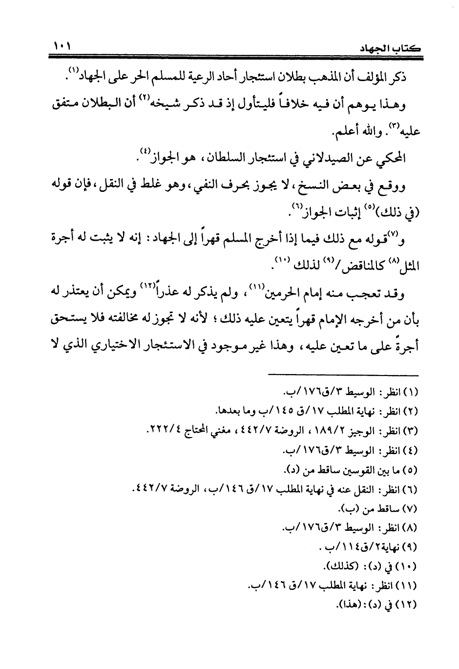 ذكر المؤلف أن المذهب بطلان استئجار أحاد الرعية للمسلم الحر على الجهاد (¬1).