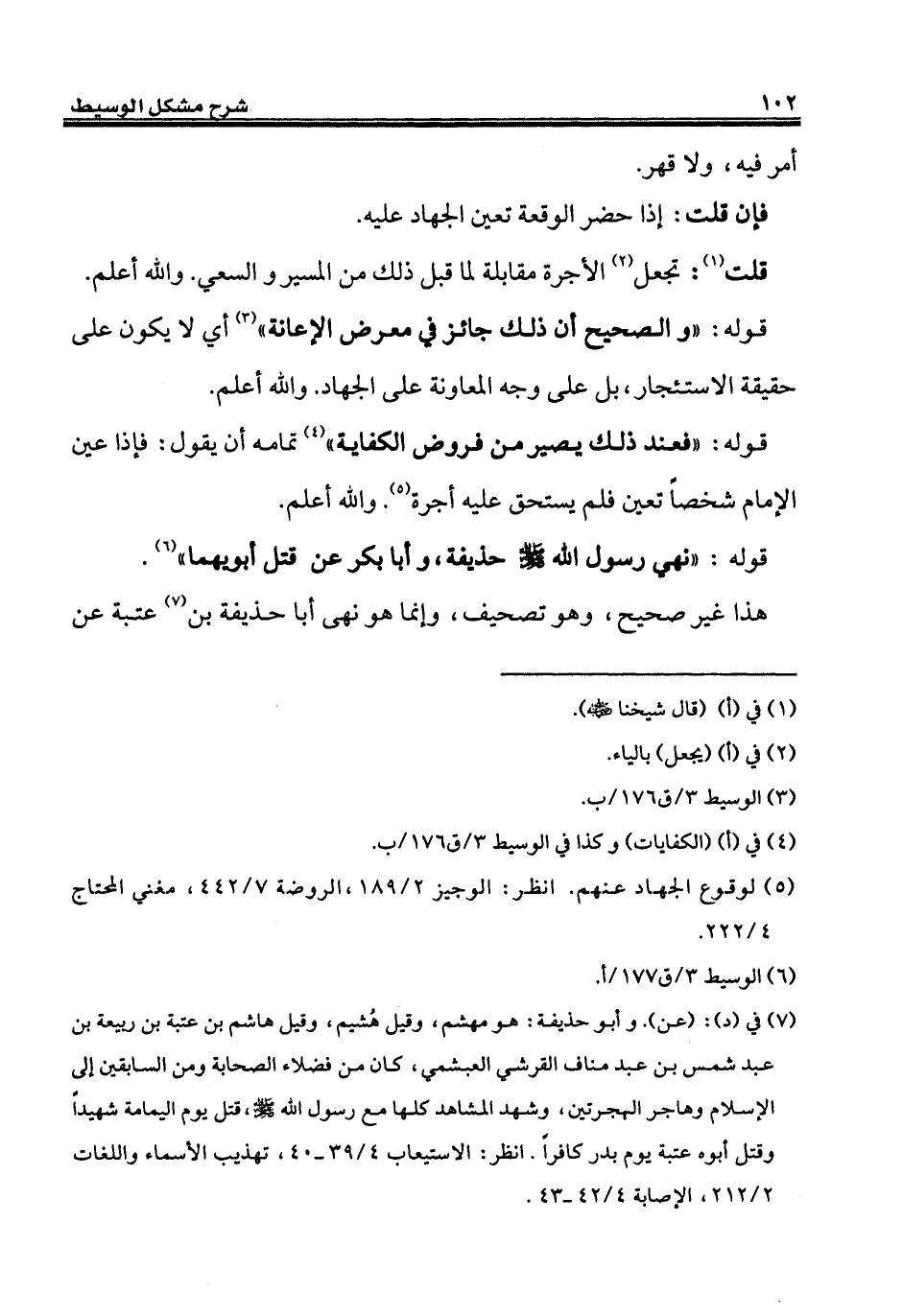 (¬4) في (أ) (الكفايات) وكذا في الوسيط 3/ ق 176/ ب.