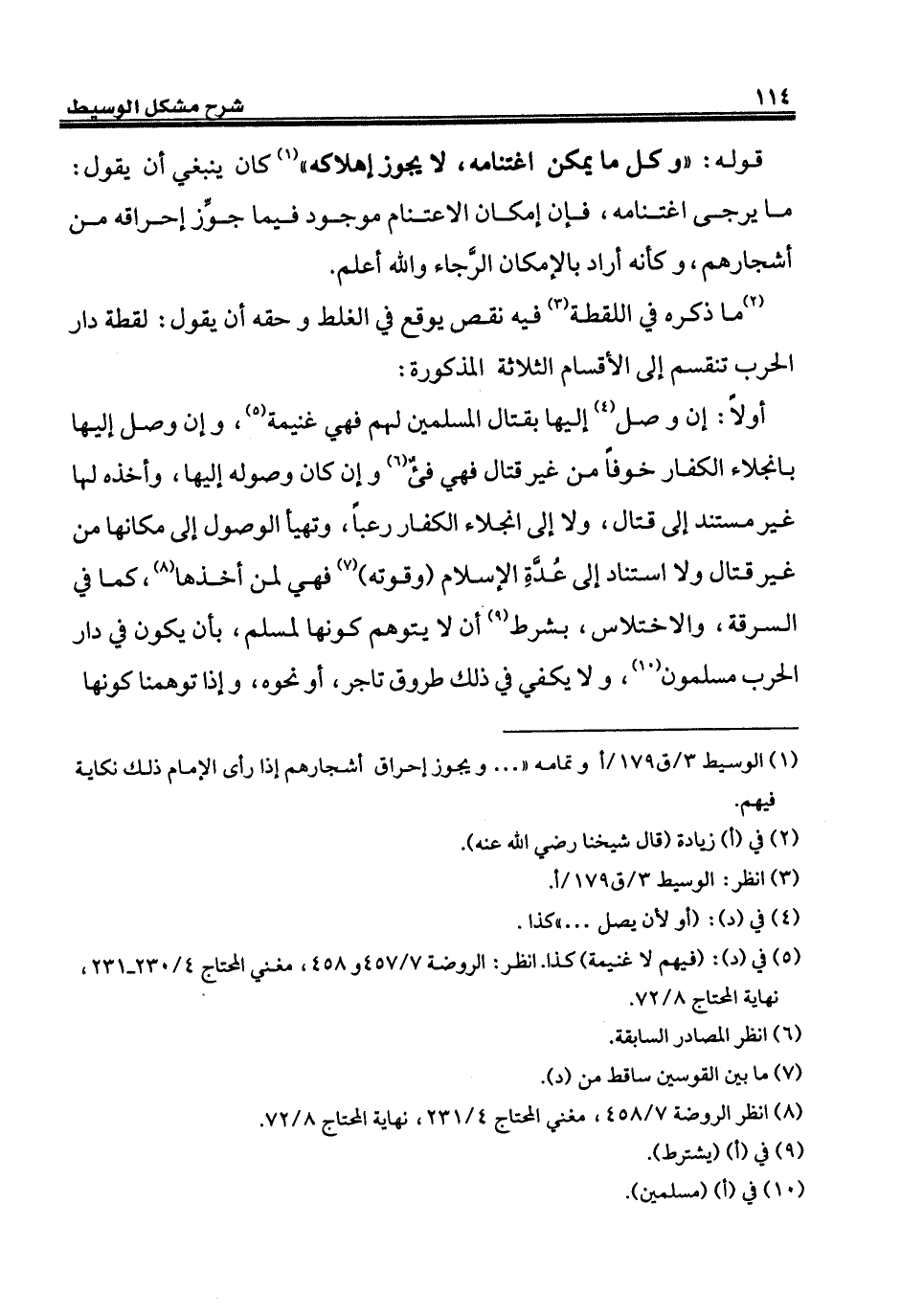 (¬1) الوسيط 3/ ق 179/ أوتمامه " ... ويجوز إحراق أشجارهم إذا رأى الإِمام ذلك نكاية فيهم.