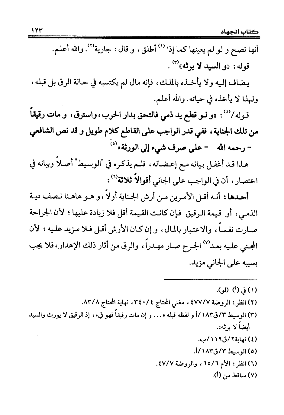 (¬3) الوسيط 3/ ق 183/ أولفظه قبله " ... وإن مات رقيقاً فهو فيء، إذ الرقيق لا يورث والسيد أيضاً لا يرثه".