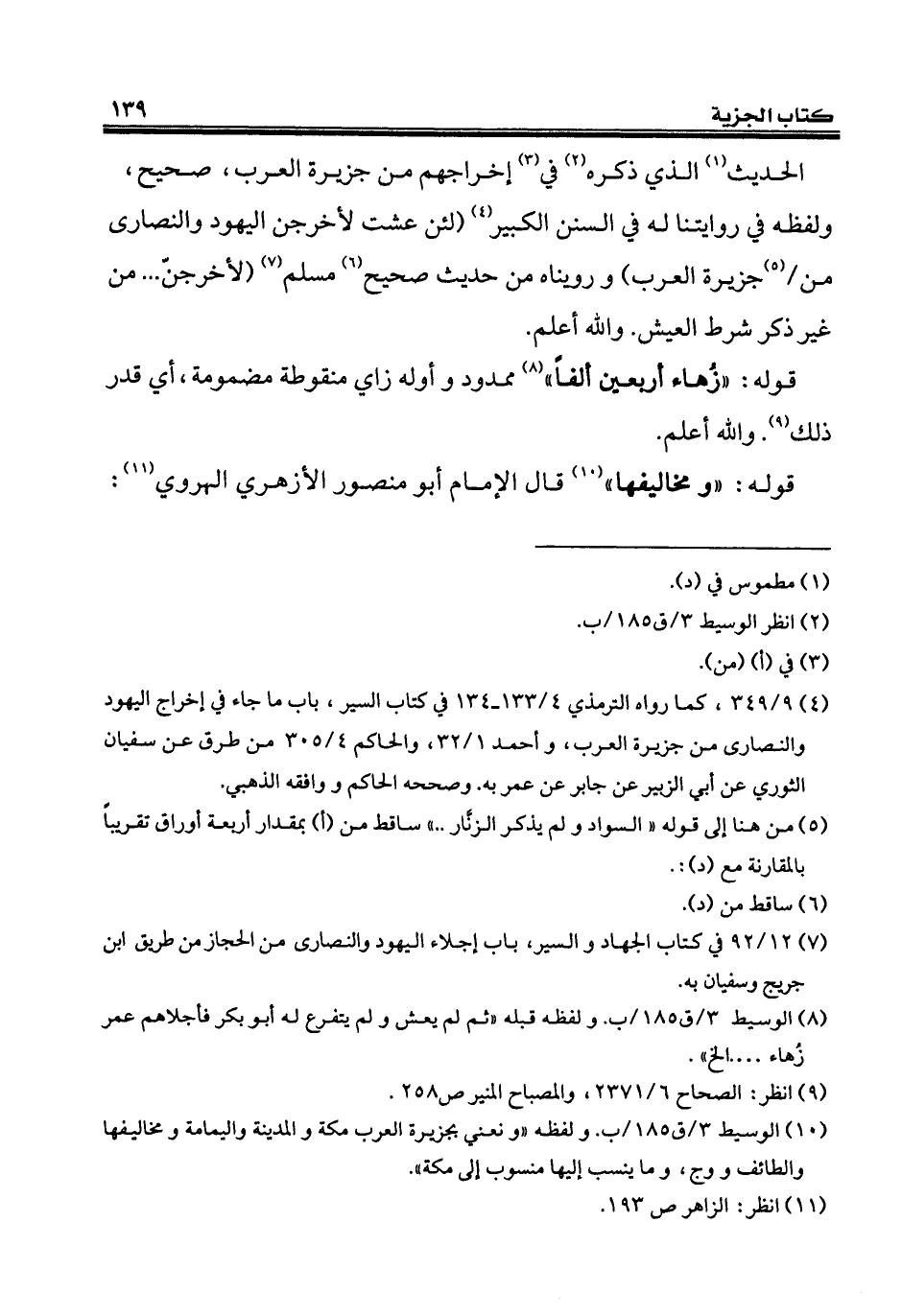 (¬10) الوسيط 3/ ق 185/ ب. ولفظه "ونعني بجزيرة العرب مكة والمدينة واليمامة ومخاليفها والطائف ووج، وما ينسب إليها منسوب إلى مكة".