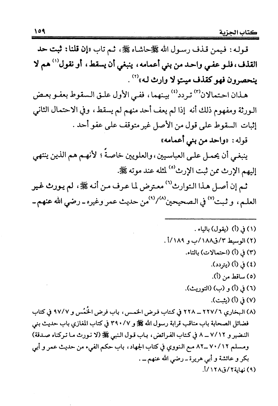 ينبغي أن يحمل على العباسيين، والعلويين خاصةً؛ لأنهم هم الذين ينتهي إليهم الإرث ممن ثبت الإرث (¬5) لمثله عند موته - صلى الله عليه وسلم -.