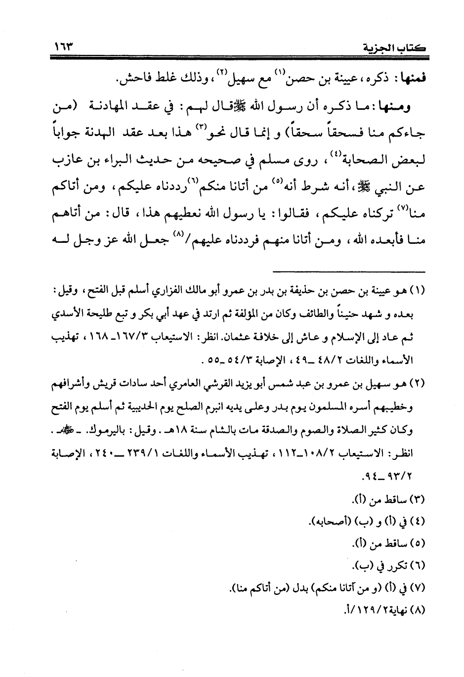 (¬2) هو سهيل بن عمرو بن عبد شمس أبو يزيد القرشي العامري أحد سادات قريش وأشرافهم وخطيبهم أسره المسلمون يوم بدر وعلى يديه انبرم الصلح يوم الحديبية ثم أسلم يوم الفتح وكان كثير الصلاة والصوم والصدقة مات بالشام سنة 18 هـ. وقيل: باليرموك. - رضي الله عنه -. انظر: الاستيعاب 2/ 108 - 112، تهذيب الأسماء واللغات 1/ 239 - 240، الإصابة 2/ 93 - 94.