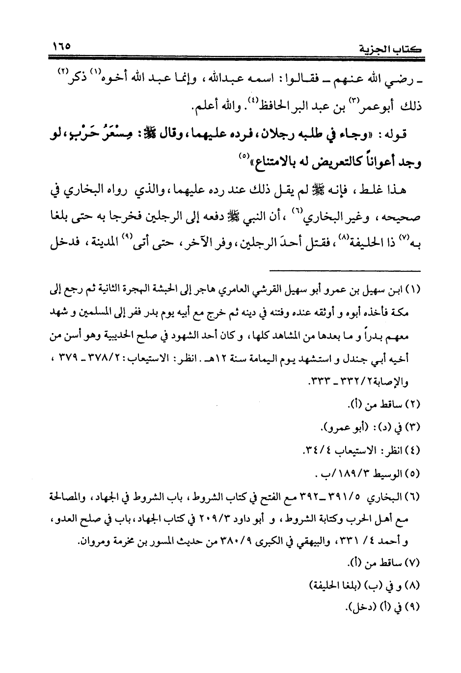 (¬6) البخاري 5/ 391 - 392 مع الفتح في كتاب الشروط، باب الشروط في الجهاد، والمصالحة مع أهل الحرب وكتابة الشروط، وأبو داود 3/ 209 في كتاب الجهاد، باب في صلح العدو، وأحمد 4/ 331، والبيهقي في الكبرى 9/ 380 من حديث المسور بن مخرمة ومروان.