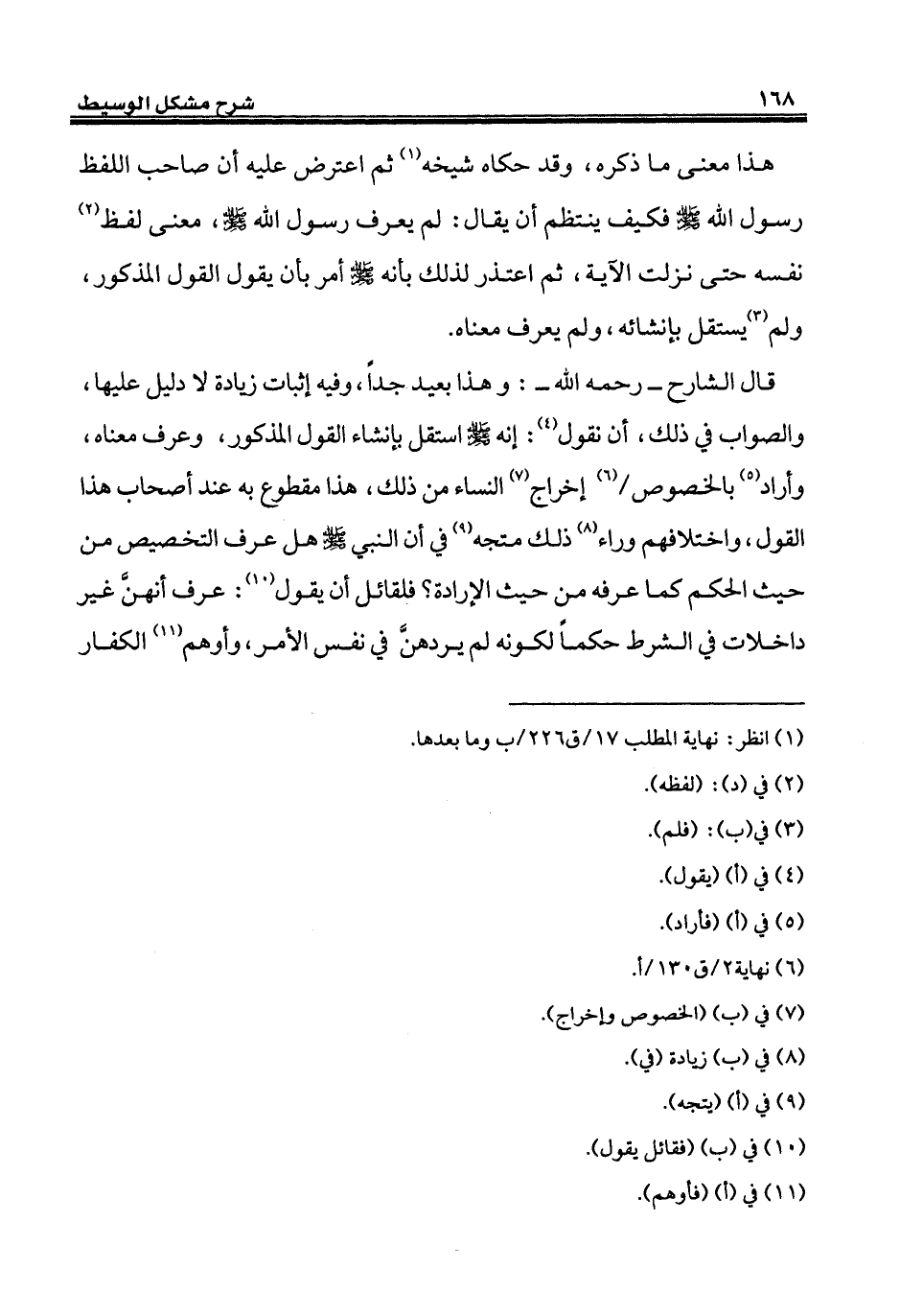 قال الشارح - رحمه الله -: وهذا بعيد جداً، وفيه إثبات زيادة لا دليل عليها، والصواب في ذلك، أن نقول (¬4): إنه - صلى الله عليه وسلم - استقل بإنشاء القول المذكور، وعرف معناه، وأراد (¬5) بالخصوص (¬6) إخراج (¬7) النساء من ذلك، هذا مقطوع به عند أصحاب هذا القول، واختلافهم وراء (¬8) ذلك متجه (¬9) في أن النبي - صلى الله عليه وسلم - هل عرف التخصيص من حيث الحكم كما عرفه من حيث الإرادة؟ فلقائل أن يقول (¬10): عرف أنهنَّ غير داخلات في الشرط حكماً لكونه لم يردهنَّ في نفس الأمر، وأوهم (¬11) الكفار