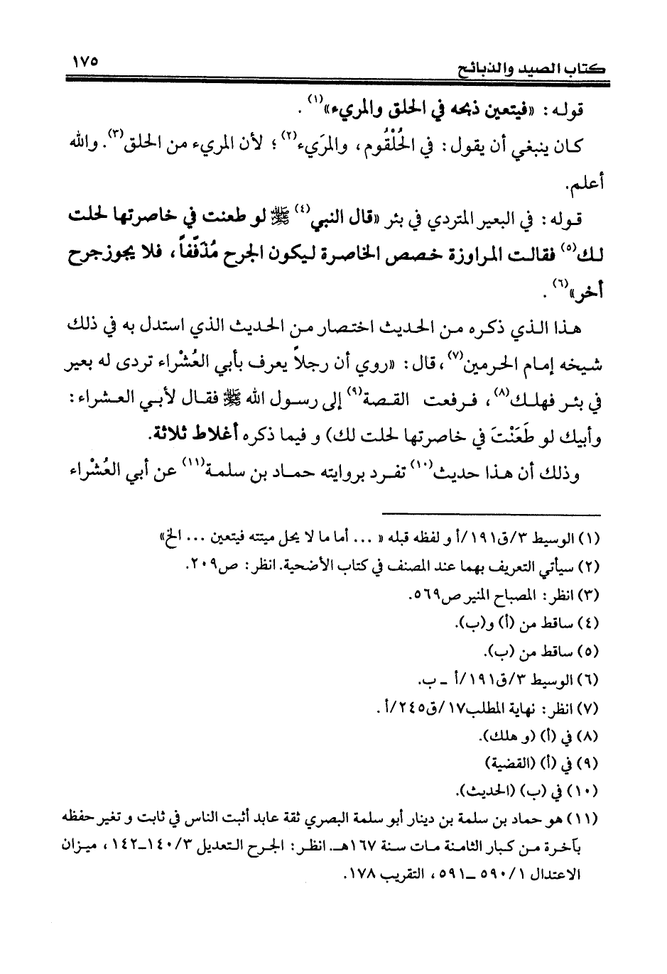 (¬1) الوسيط 3/ ق 191/ أولفظه قبله " ... أما ما لا يحل ميتته فيتعين ... إلخ"