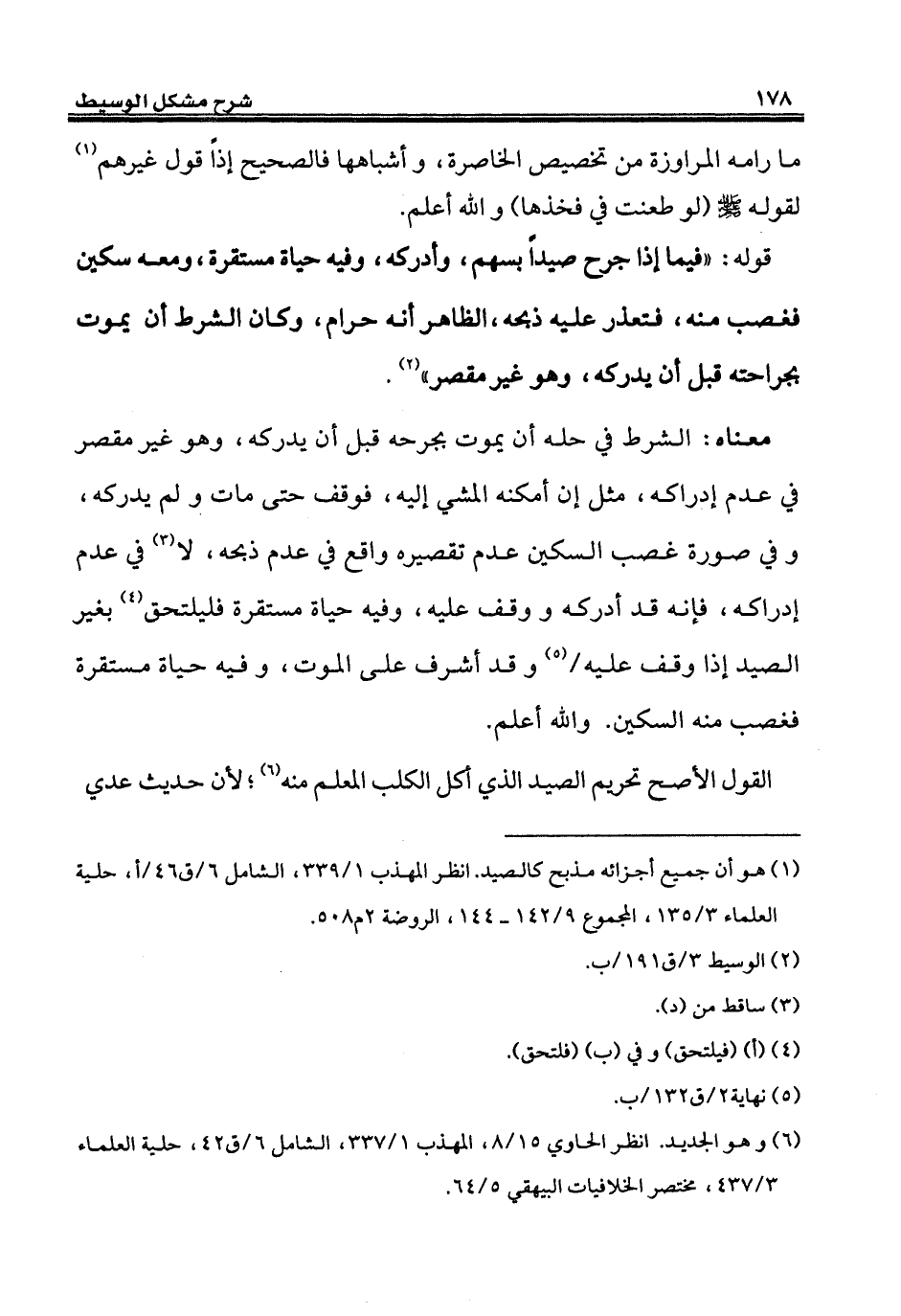 (¬1) هو أن جميع أجزائه مذبح كالصيد. انظر المهذب 1/ 339، الشامل 6/ ق 46/ أ، حلية العلماء 3/ 135، المجموع 9/ 142 - 144، الروضة 2/ 508.