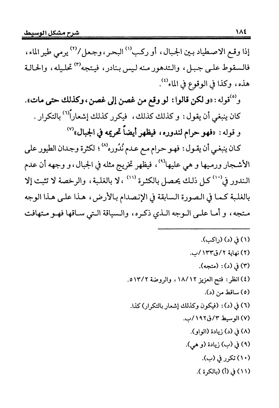 كان ينبغي أن يقول: فهو حرام مع عدم نُدُوره (¬8)؛ لكثرة وجدان الطيور على الأشجار ورميها وهي عليها (¬9)، فيظهر تخريج مثله في الجبال، ووجهه أن عدم الندور في (¬10) كل ذلك يحصل بالكثرة (¬11)، لا بالغلبة، والرخصة لا تثبت إلا بالغلبة كما في الصورة السابقة في الإنصدام بالأرض، هذا على هذا الوجه متجه، وأما على الوجه الذي ذكره، والسياقة التي ساقها فهو متهافت