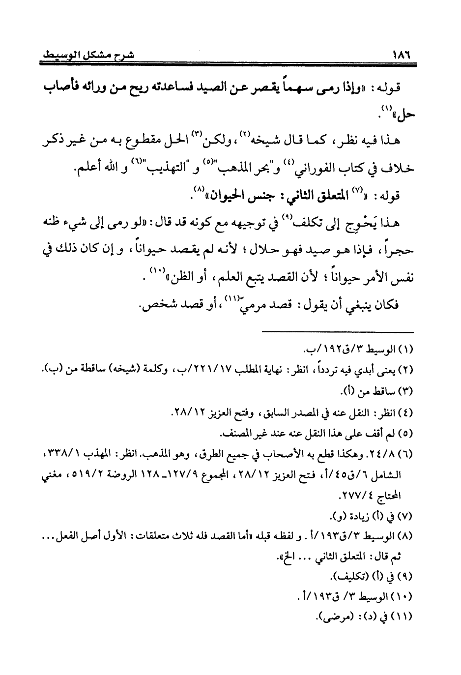 (¬8) الوسيط 3/ ق 193/ أ. ولفظه قبله "أما القصد فله ثلاث متعلقات: الأول أصل الفعل ... ثم قال: المتعلق الثاني ... إلخ".
