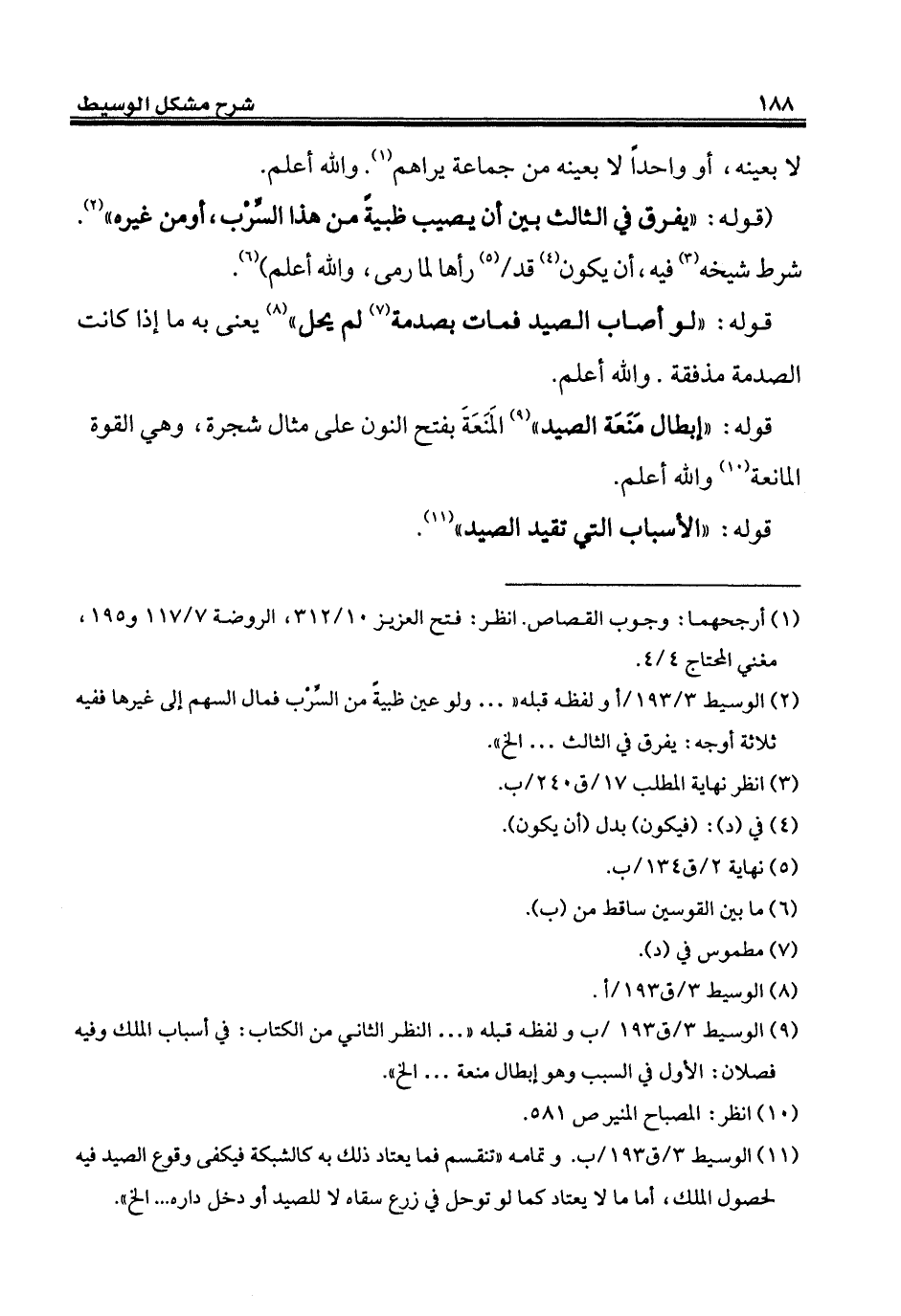 (¬11) الوسيط 3/ ق 193/ ب. وتمامه "تنقسم فما يعتاد ذلك به كالشبكة فيكفى وقوع الصيد فيه لحصول الملك، أما ما لا يعتاد كما لو توحل في زرع سقاه لا للصيد أو دخل داره ... إلخ".