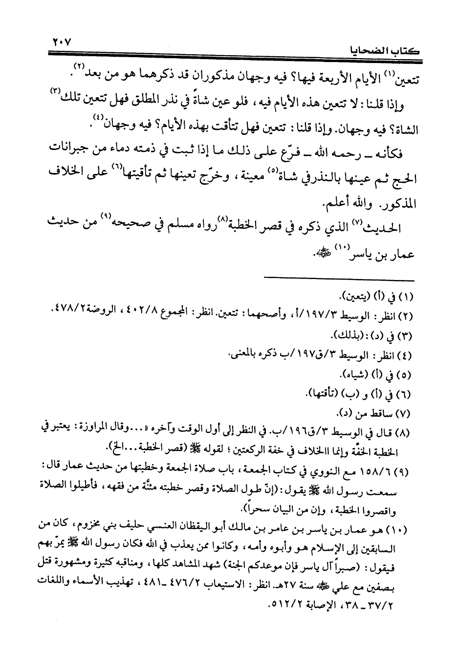 (¬10) هو عمار بن ياسر بن عامر بن مالك أبو اليقظان العنسي حليف بني مخزوم، كان من السابقين إلى الإسلام هو وأبوه وأمه، وكانوا ممن يعذب في الله فكان رسول الله - صلى الله عليه وسلم - يمرّ بهم فيقول: (صبراً آل ياسر فإن موعدكم الجنة) شهد المشاهد كلها، ومناقبه كثيرة ومشهورة قتل بصفين مع علي - رضي الله عنه - سنة 27 هـ. انظر: الاستيعاب 2/ 476 - 481، تهذيب الأسماء واللغات 2/ 37 - 38، الإصابة 2/ 512.