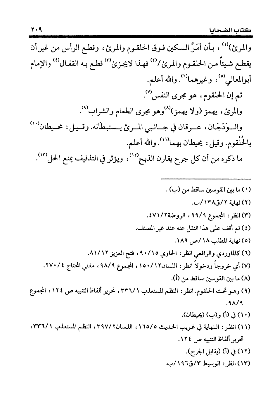 (¬9) وهو تحت الحلقوم. انظر: النظم المستعذب 1/ 336، تحرير ألفاظ التنبيه ص 124، المجموع 9/ 98.