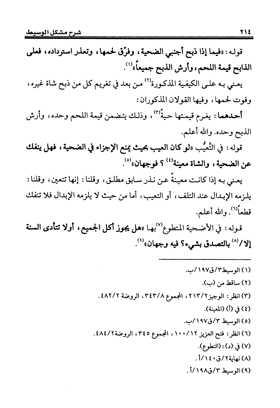 (¬6) انظر: فتح العزيز 12/ 100، المجموع 345، الروضة 2/ 484.
