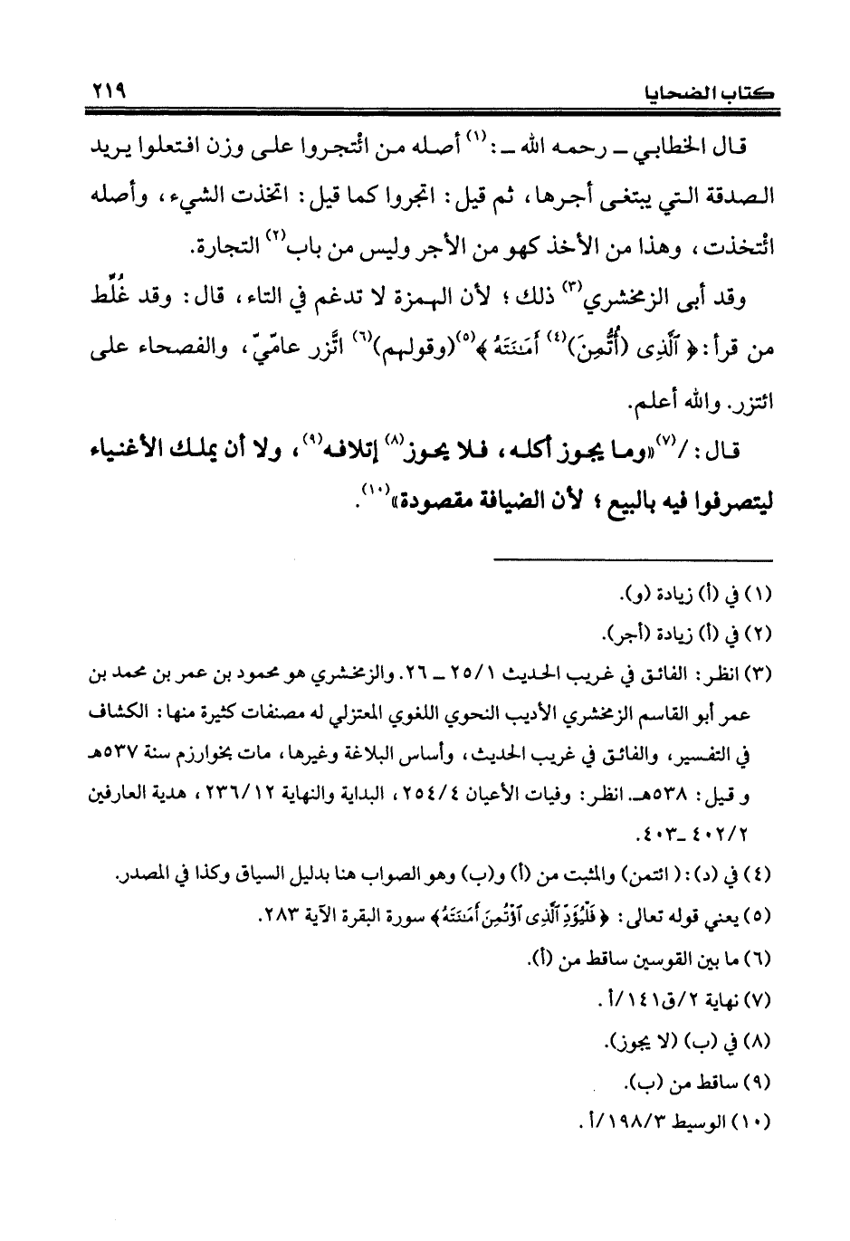 (¬3) انظر: الفائق في غريب الحديث 1/ 25 - 26. والزمخشري هو محمود بن عمر بن محمَّد بن عمر أبو القاسم الزمخشري الأديب النحوي اللغوي المعتزلي له مصنفات كثيرة منها: الكشاف في التفسير، والفائق في غريب الحديث، وأساس البلاغة وغيرها، مات بخوارزم سنة 537 هـ وقيل: 538 هـ. انظر: وفيات الأعيان 4/ 254، البداية والنهاية 12/ 236، هدية العارفين 2/ 402 - 403.